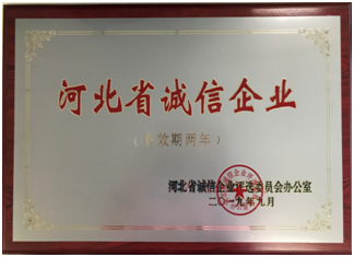 2019年9月,河北中儲物流有限公司被評為河北省誠信企業,公司總經理被授予2019年“河北省企業誠信建設優秀工作者”榮譽稱號。